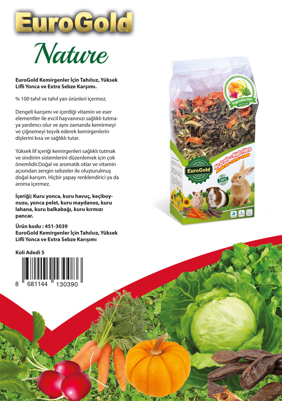 EuroGold Kemirgenler İçin Tahılsız, Yüksek Lifli Yonca ve Extra Sebze Karışımı
