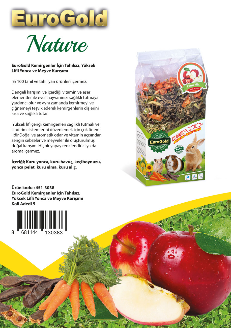 EuroGold Kemirgenler İçin Tahılsız, Yüksek Lifli Yonca ve Meyve Karışımı